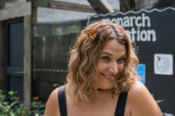 We went into the butterfly house and immediately, a black butterfly with blue coloring in its wings flew by my face and I was just drawn to him. I said, "By the end of our time, I'm going to get him in on a picture." We had some amazing monarch participation and low and behold, my butterfly came over and landed right on my hand. I kept passing him off to Nikki, but he kept on coming back to me. She, then, described a father-figure gentleman whom I was very close with. I immediately knew she was talking about my stepfather, Jack. We exchanged some words, then went about with the rest of our session.